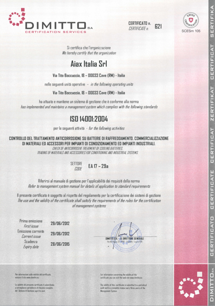 AiAX Italia Srl certificata ISO 14001