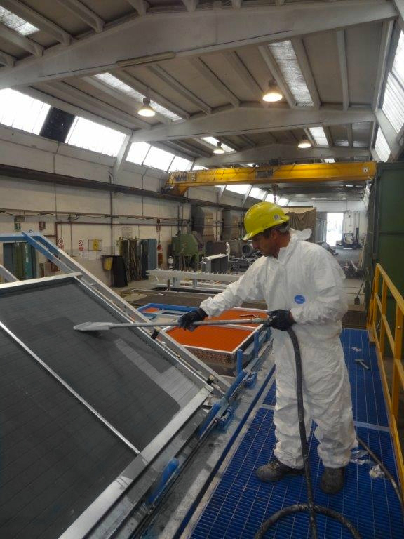 > applicazione con il sistema a caduta dello strato superficiale con totale penetrazione del pacco alettato di qualsiasi spessore;
